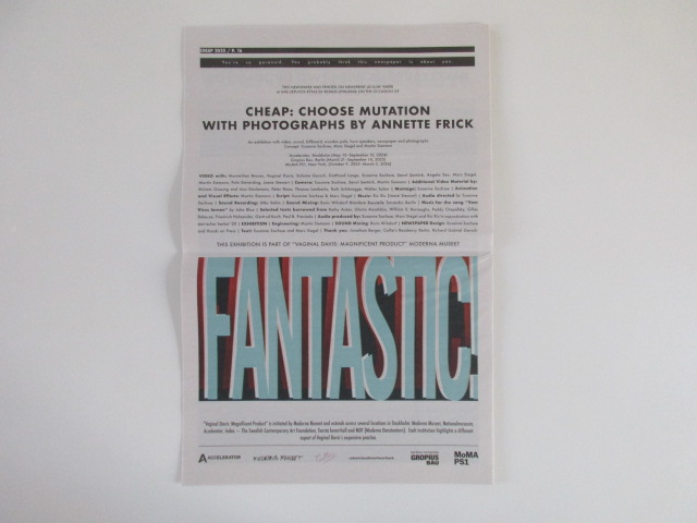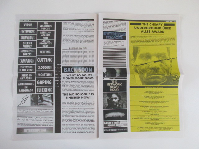 Cheap es un colectivo artístico fundado en Berlín en el año 2001, por Daniel Hendrickson, Susanne Sachsse y Marc Siegel y del que el activista queer Vaginal Davis es un colaborador permanente. 42 x 28 cm, 16 páginas, muy buen estado de conservación.